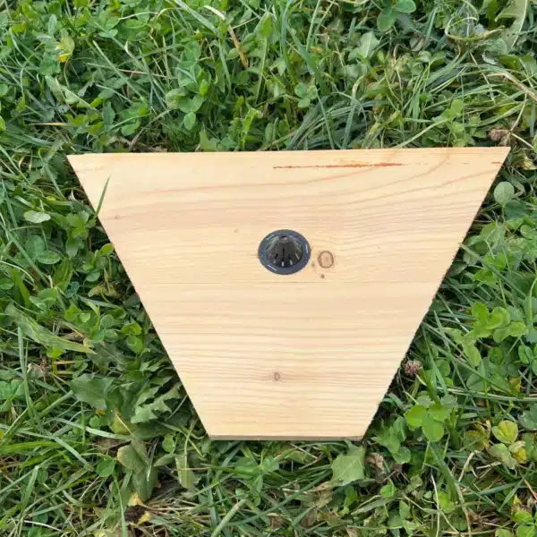 Elle est constituée de bois et d’un petit cône noir situé au milieu de la partition qui ne laisse passer les abeilles que dans un sens.
