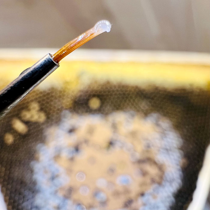 - Gelée royale récoltée et mise en pot par l’apiculteur